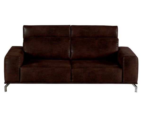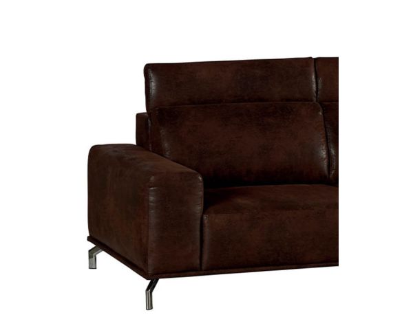 Il design classico e caldo di questo divano in tessuto marrone conaspetto di pelle old moiré è esaltato dalle gambe in metallo cromato che porteranno uno spirito da club e l'autenticità del vostro salotto. La seduta generosa e avvolgente è accogliente, mentre i braccioli imbottiti e gli ampi poggiatesta promettono comfort e relax.