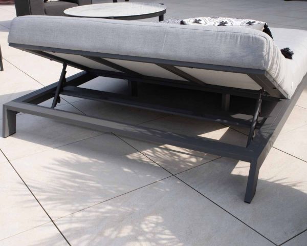 Questo generoso lettino matrimoniale con dimensioni da letto aspetta solo di accogliervi comodamente come il vostro divano. Ilmaterasso di 18 cm di spessore è morbido e sostenuto, con una densità di >30 kg/m3. Dimenticate gli scomodi cuscini che si degradano in una sola stagione: il vostro lussuoso mobile da esterno è stato progettato esclusivamente con materiali di alta qualità e ad alte prestazioni per garantirvi anni di tranquillità.
