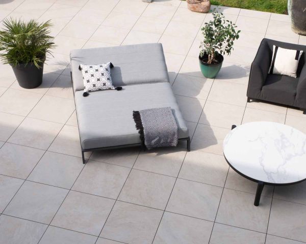 Vivete il relax in modo diverso, condividetelo! Portate modernità e comfort nel vostro giardino con questa chaise longue doppia dai toni grafici molto moderni della nostra collezione "Terrace". Non vi resta che decidere chi invitare!