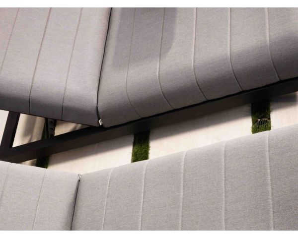 > Speciale tessuto Sunbrella® per esterni di alta gamma; colore grigio chiaro, cuciture orizzontali per un effetto visivo semplice e pulito