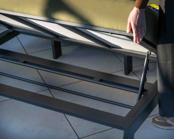 La sua struttura leggera in alluminio consente di spostarlo a piacimento. Per un maggiore comfort, è possibile regolare lo schienale scegliendo tra 3 livelli di inclinazione.