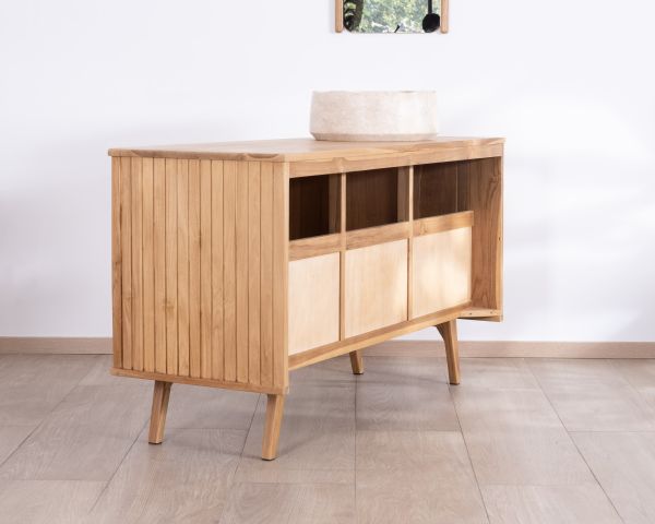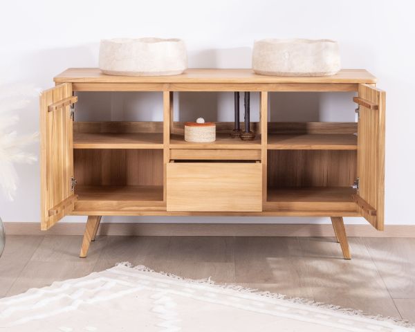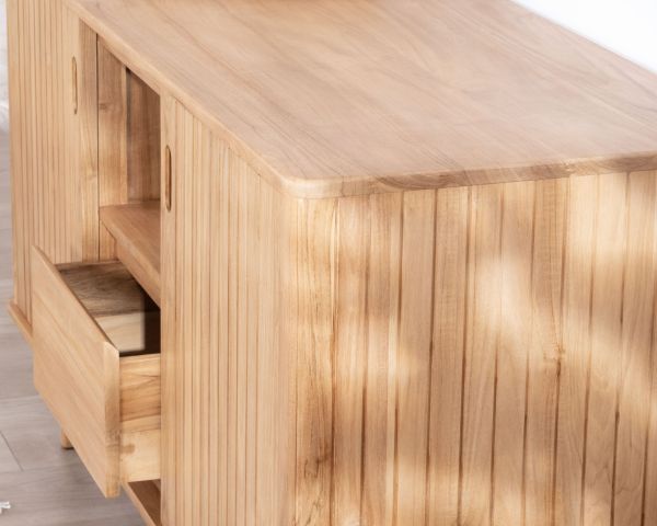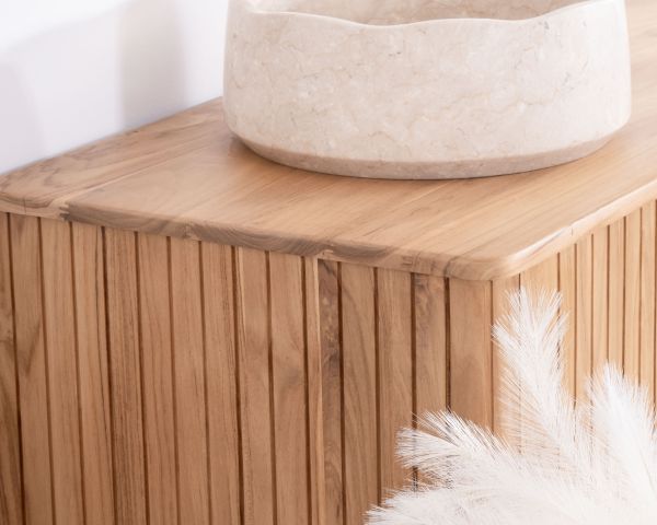 Il legno di teak è naturalmente impermeabile e imputrescibile, quindi le macchie non possono penetrare in profondità. Ogni giorno, tuttavia, si consiglia di eliminare gli schizzi d'acqua con un panno morbido o un panno in microfibra per evitare ristagni. Per la pulizia quotidiana, è sufficiente una spazzola a setole morbide o una spugna non abrasiva e acqua saponata per la manutenzione dei mobili. Occasionalmente, 1 o 2 volte l'anno a seconda della frequenza e dell'uso, una leggera applicazione di cera incolore per teak o acquaragia nutrirà il legno e ne preserverà la lucentezza, preservandone l'aspetto naturale.