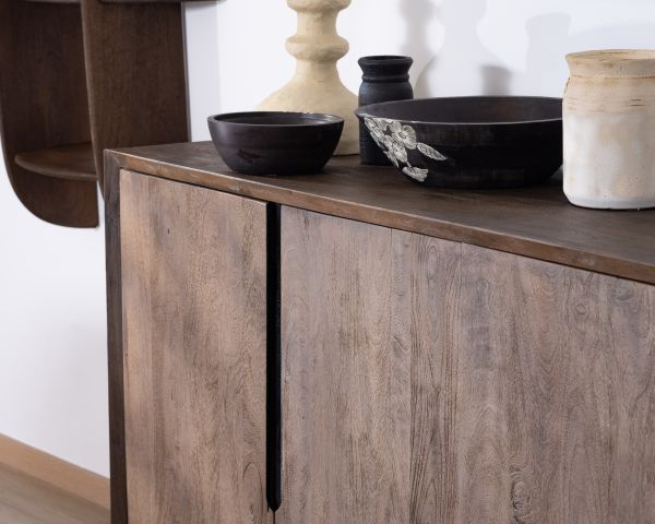 Abbinata a un grande specchio, a una lampada curva o a qualche oggetto decorativo scelto con cura, questa credenza in legno diventa un punto di equilibrio visivo. Una creazione raffinata, pensata per portare eleganza, autenticità e attenzione ai dettagli nel cuore del vostro spazio abitativo.