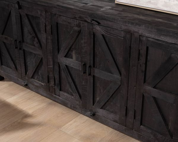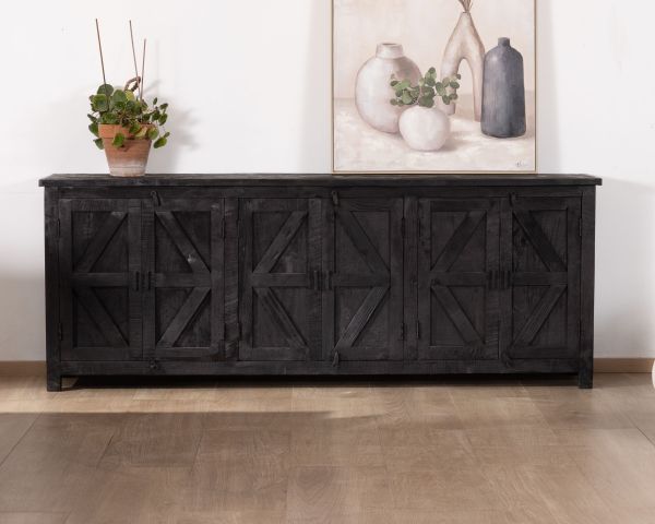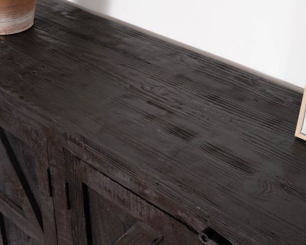 Realizzata in legno riciclato e in questo colore nero, questa enfilade in stile etnico è un mobile pieno di carattere e di fascino vivace per un arredamento unico e ricco di storia.
