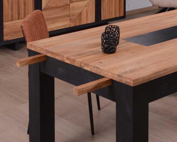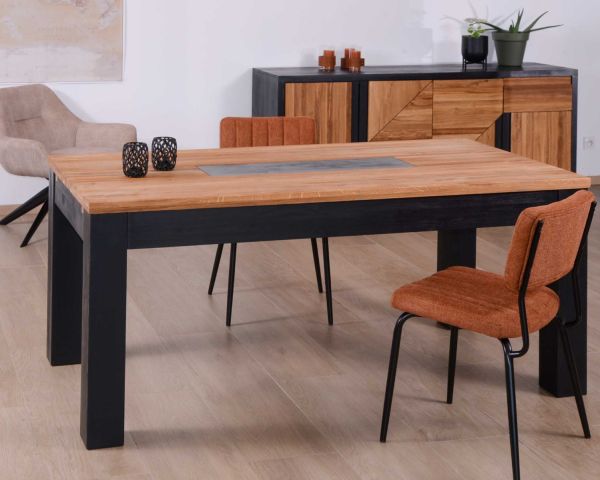 Adatto al tavolo in legno massiccio da 180 cm "Flix" in stile moderno, naturale e nero (riferimento prodotto #9269)