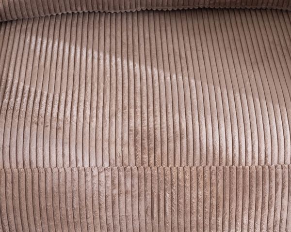 Revêtement tissu velours côtelé, coloris camel avec reflets soyeux et lumineux ; composition 100% polyester