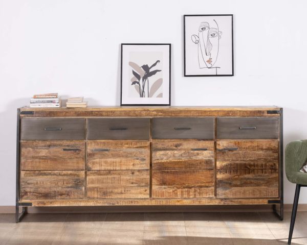 L'enfilade industriale in legno massiccio di mango e metallo della collezione "Shade" è un mobile che unisce funzionalità ed estetica, con un design robusto e pieno di carattere.