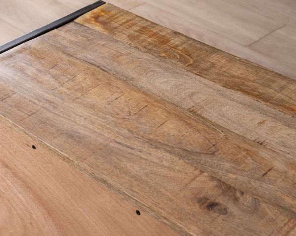 La struttura di questa credenza è una miscela armoniosa di materiali, con l'uso di legno massiccio di mango e metallo. Il legno di mango aggiunge calore visivo, mentre il metallo con la sua finitura patinata conferisce a questo mobile contenitore un rassicurante aspetto industriale.