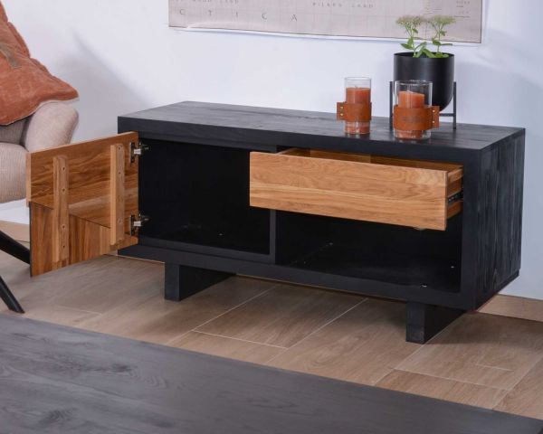 Perfetto per arredare e organizzare un salotto, questo mobile TV è lungo 119 cm. Con un cassetto, un'anta e una nicchia sul retro, è incredibilmente affascinante. È perfetto per montare i vostri apparecchi hi-fi e il vostro schermo piatto!