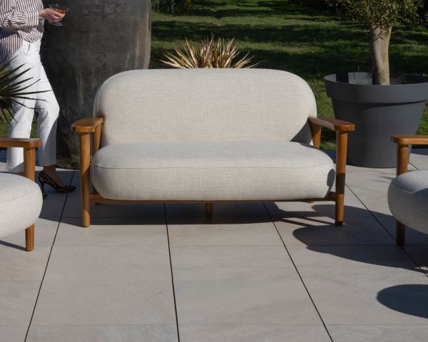 Materiali: Tessuto speciale per esterni, imbottitura in schiuma, teak massiccio