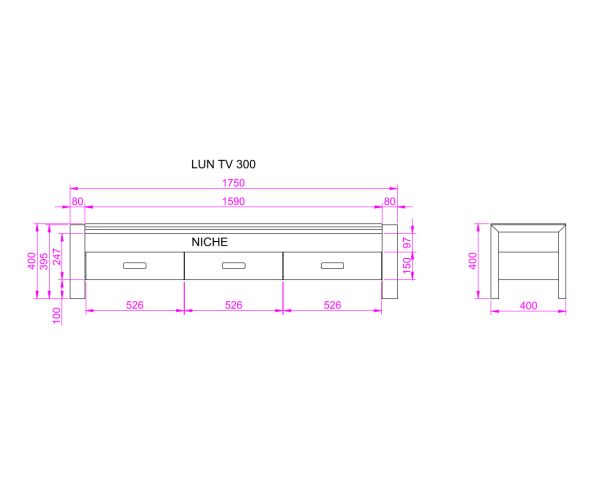 Lunghezza : 180cm; Altezza : 40cm; Profondità : 40cm