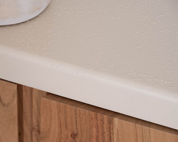 La pulizia occasionale può essere effettuata con un panno leggermente umido, evitando prodotti abrasivi che potrebbero alterare l'aspetto del cemento sabbiato o opacizzare la lucentezza del legno massiccio di acacia.