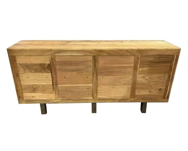 Con quattro ante, questa credenza bassa è realizzata in legno massiccio di acacia rifinito in una calda tonalità di teak naturale. Ha il fascino caratteristico del legno non trattato, con le sue venature visibili e i frontali delle ante naturalmente curvati che riprendono la forma autentica dei tronchi d'albero.