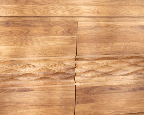 Struttura esterna in rovere massiccio oliato per un aspetto autentico: top, fondo, frontali dei cassetti e ante