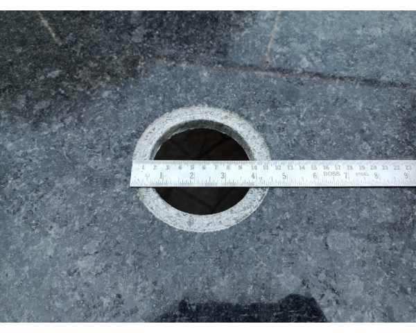 Foro di scarico: diametro interno circa 8,5 cm; diametro esterno circa 11,5 cm