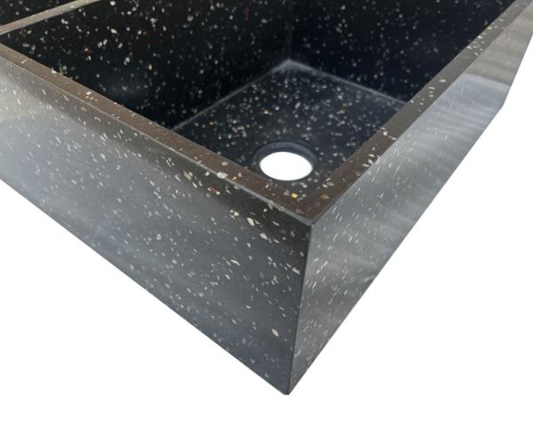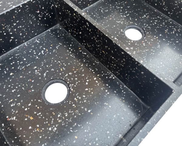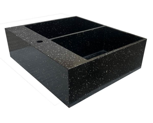 Per un lavello doppio dal carattere incredibile, perché non lasciarsi sedurre da questo modello a doppia vasca? Con il suo colore principale grigio scuro punteggiato da riflessi arancioni e beige, è l'abbinamento perfetto per il legno di mango del Grand Chef #8954. Con le sue linee pure e l'aspetto grezzo ma liscio, questo grande lavello è la risposta perfetta ai nostri desideri contemporanei. Sarà al centro dell'attenzione in cucina, rendendo il lavaggio o il risciacquo dell'insalata un vero piacere.