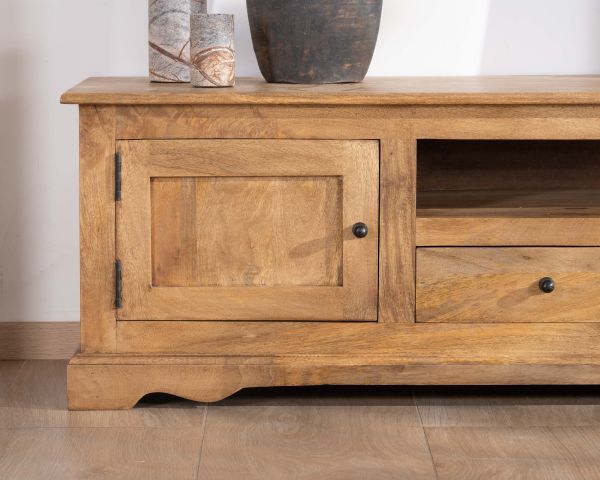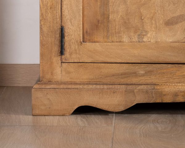 Mango con finitura sabbiata e leggermente strutturata; tonalità naturale e leggermente ingrigita "antique"