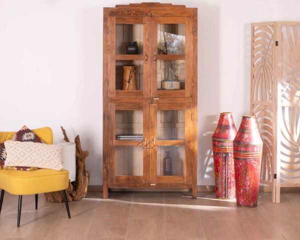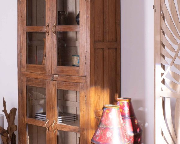E se invitaste un materiale sostenibile e riciclato nel vostro salotto? Realizzato in legno esotico riciclato, l'armadio "Batti" ha un aspetto dignitoso e raffinato. Ci piace il suo piano a gradini, le maniglie in metallo e l'aspetto generale. Con la sua finitura smaltata, mette in mostra i vostri oggetti preziosi proprio come il materiale stesso.