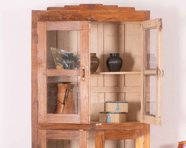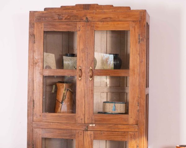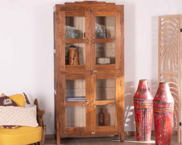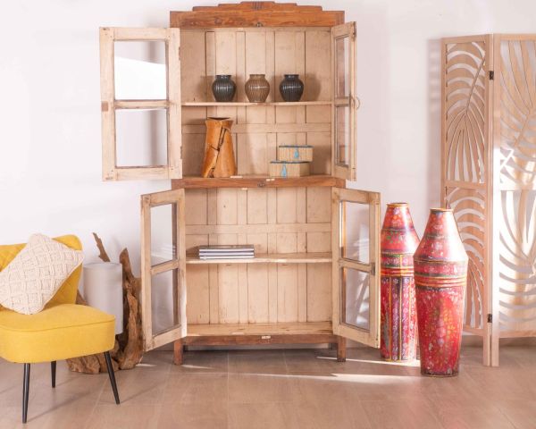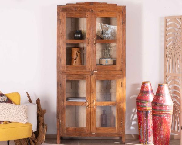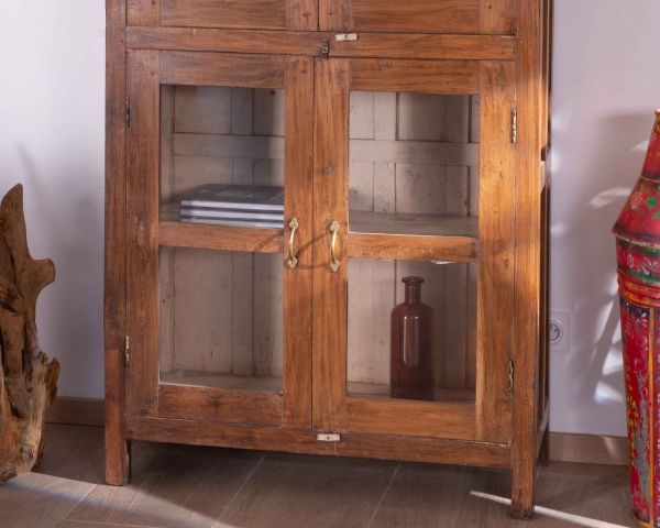 Armadio grande "Batti" in metallo e legno riciclato con ante in vetro