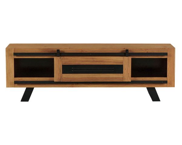 Grande porta TV industriale "Cardiff" in legno massiccio nero e marrone 170 cm