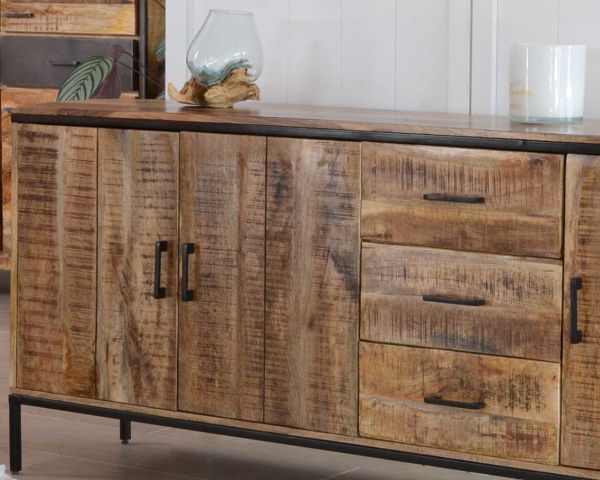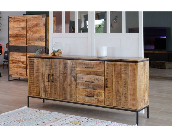 La credenza industriale "Mango", L.180xA.80xP.40cm, sarà perfetta in qualsiasi stanza della vostra casa. La cucina, la sala da pranzo o il giardino d'inverno saranno valorizzati da questo mobile senza tempo che durerà per anni.Realizzato con materiali solidi,ha il vantaggio di essere consegnato già assemblato. Non male, eh?