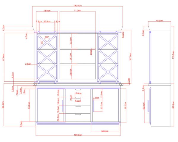 Dimensioni: L 180 ; P 45 cm ; H 115 cm