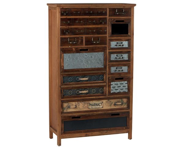 Questoarmadio in stile industriale alto 128 cm non mancherà di stupire. I frontali dei cassetti sono realizzati in abete massiccio, MDF, zinco, PU e metallo per creare una serie di effetti. Alcuni cassetti sono "trompe l'œil": si potrebbe pensare di avere diversi piccoli cassetti, ma questo è uno solo. Così si possono riporre molti oggetti. Questo mobile gioca con la varietà delle maniglie per creare curiosità. Questo mobile è realizzato principalmente in legno. Può essere collocato in un ingresso, in un ufficio, in un soggiorno... o utilizzato come mobile aggiuntivo. Si ha sempre bisogno di riporre carte, tessuti, cancelleria, ecc. Con tutti i suoi cassetti di diverse dimensioni, forme, colori e motivi, troverete sicuramente qualcosa da mettere dentro!