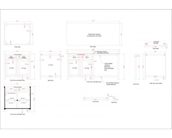 Mobili parzialmente assemblati: struttura della sezione snack da montare (3 traverse e un telaio) sul piedistallo. Piano in marmo