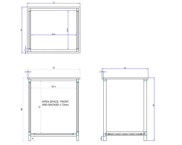 Ingombro: Lunghezza: 72 cm; Profondità: 63 cm; Altezza: 86 cm