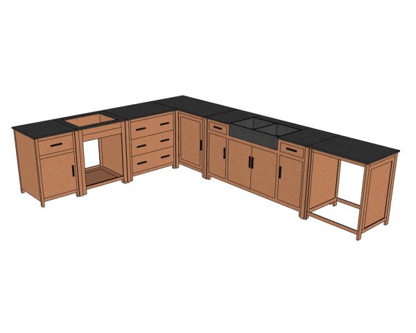 Progettata per ospitare una lavastoviglie, questa base da cucina è impreziosita dalla struttura in legno massiccio e dal piano in granito nero.
