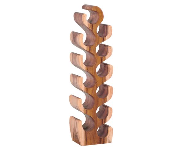 Con il suo design raffinato e il calore del legno di suar, il portabottiglie è pratico e decorativo al tempo stesso, per integrarsi armoniosamente con gli interni in stile etnico o per aggiungere un tocco esotico agli stili moderni. Inoltre, occupa pochissimo spazio, per cui si troverà a suo agio in una cucina o in un soggiorno spaziosi, sopra una credenza o direttamente sul pavimento per un effetto più selvaggio.