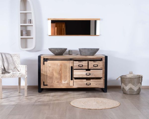 Aggiungete autenticità al vostro bagno con il mobiletto "Montreal". Realizzato con cura in metallo nero e legno massiccio, questo mobiletto aggiungerà un tocco di colore al vostro bagno. Godetevi ogni giorno un'atmosfera calda e avvolgente nel vostro bagno.