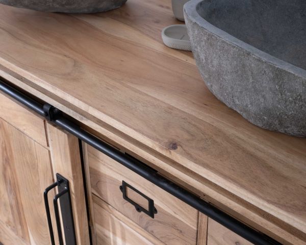 Ideale per l'uso con pavimenti e pareti chiare, questo mobile da bagno in resistente legno esotico vi aiuterà a mantenere la stanza luminosa. Vi aiuterà a creare un ambiente rustico chic o moderno, a seconda del design del lavabo e del rubinetto che sceglierete. Grazie al piano non preforato, avrete il piacere di decorarlo a vostro piacimento.