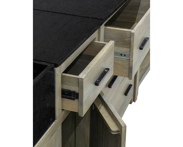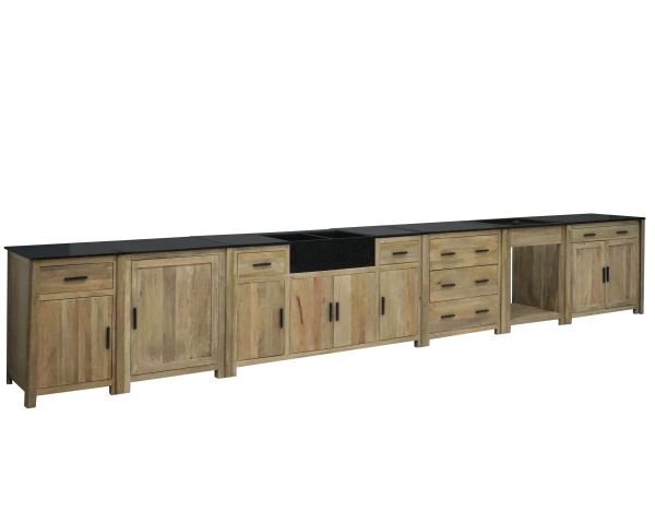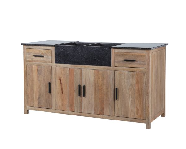 I materiali utilizzati per progettare i mobili della cucina sono solidi e durevoli. Il legno di mango è ecologico e resistente all'umidità e agli urti, mentre il granito è immune da macchie e graffi. Facili da mantenere, questi due materiali conferiscono al vostro nuovo mobile una grande stabilità e una sensazione di calore.
