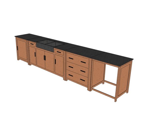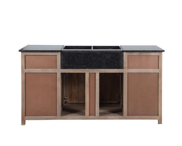 Grazie all'ampio spazio di archiviazione, il mobile da cucina ha tutto ciò che serve per semplificare la vita. Farà un figurone in una cucina su misura che potrete creare a vostro piacimento grazie ai diversi moduli della stessa collezione che potete trovare sul nostro sito. Potete anche optare per il doppio lavello in pietra di vostra scelta. Tra il modello in terrazzo (rif. #8951) e la versione in granito (rif. #9016), quale preferite?