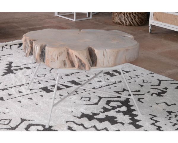 Per un tocco delicato, il piano del vostro nuovo tavolino è stato sbiancato e poggia su una graziosa ma perfettamente stabile base in metallo bianco.