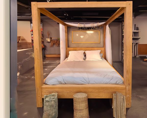 Il letto a baldacchino "Kamaia" è altamente personalizzabile e vi accompagnerà per molti anni a venire, mentre il vostro gusto per gli accessori si evolve e la bellezza naturale del rovere massiccio diventa protagonista.