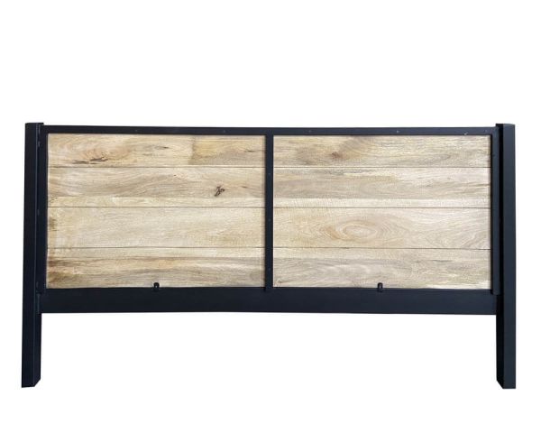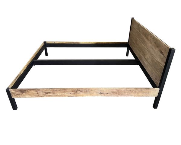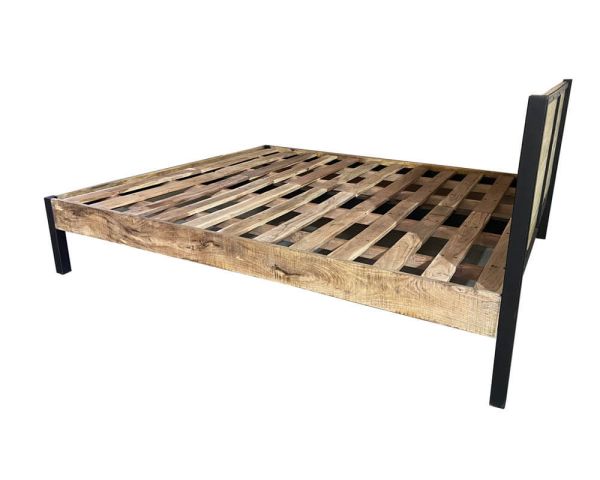 Letto king size in stile industriale "Atelier" in metallo nero e legno naturale