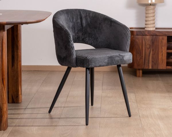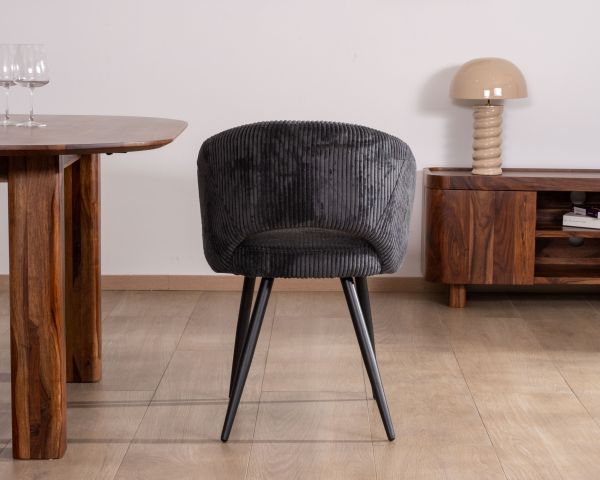 Tessuto di velluto a coste fini, colore antracite; composizione: 90% poliestere e 10% nylon