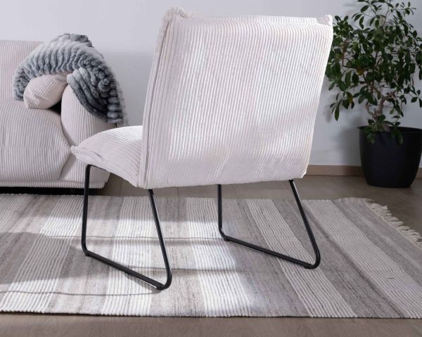Innamoratevi del design puro della poltrona in velluto a coste bianche "Calvin". La sua silhouette elegante e il rivestimento in velluto a coste aggiungeranno un tocco morbido e luminoso alla vostra casa. Vendute in confezioni da 2, queste poltrone senza braccioli combinano comfort e discrezione e conferiranno un accogliente fascino scandinavo a una zona pranzo o a un angolo relax. La loro seduta morbida e lo schienale leggermente curvo garantiranno un benessere ottimale durante i vostri momenti di relax. Le gambe in metallo nero contrastano con la tonalità fresca del tessuto e aggiungono un tocco contemporaneo.