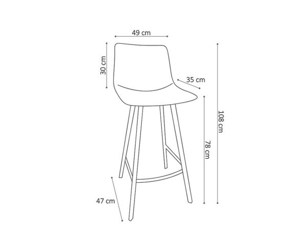 Altezza: 108 cm, Altezza seduta: 78 cm, Lunghezza: 49 cm, Profondità: 47 cm, Profondità seduta: 35 cm