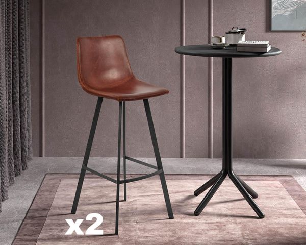 Questo seggiolone da bar, metà industriale e metà vintage scandinavo, con seduta in PU marrone, poggiapiedi e struttura in metallo nero, fa al caso vostro.