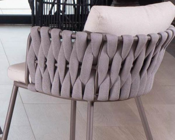 L'occhio è immediatamente attratto dalloschienale intrecciato con ampi cordoni di textilene grigioconferisce a questo pezzo di arredamento da esterno di alta gammaun pezzo di arredamento per esterni di alta gamma dal design pulito e contemporaneo. In uso, questo design combinato con laseduta avvolgenteè unnotevole comfort che piacerà a tutti i vostri ospiti e creerà un'atmosfera rilassata.