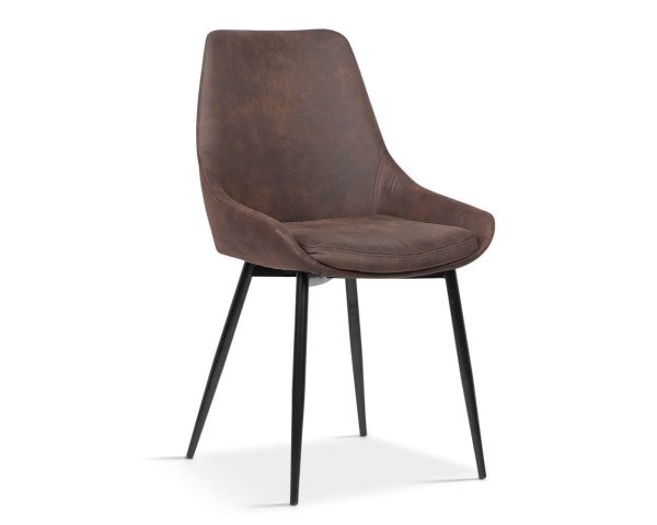 Meuble House propone la sedia in microfibra marrone "Malo". Questa sedia è realizzata in metallo e tessuto. Il suo design moderno e lineare si adatta perfettamente a tutti i tipi di interni, ma è ideale per un arredamento industriale o contemporaneo.
