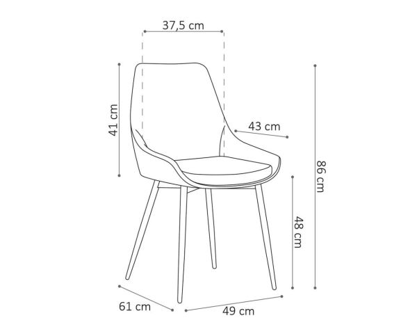 Altezza: 86 cm - Altezza seduta: 48 cm - Larghezza: 49 cm - Larghezza seduta: 37,5 cm - Profondità: 61 cm - Profondità seduta: 43 cm
