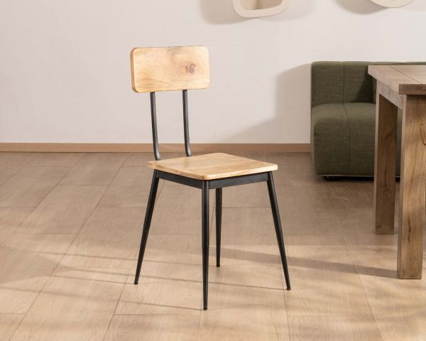 Realizzate in legno di mango e metallo nero, queste sedie si distinguono per il loro stile, in particolare grazie alle gambe sottili ed eleganti.