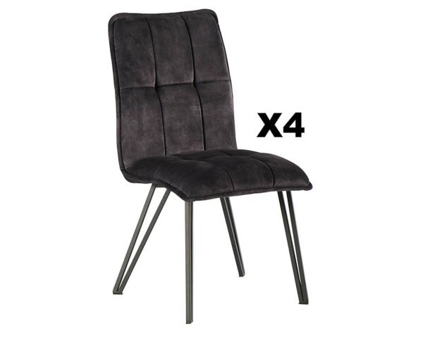 Con il loro design sobrio ed elegante, le sedie "Venus" in metallo e tessuto sono perfette per valorizzare la vostra zona pranzo. Ci piace il morbidissimo rivestimento in 100% poliestere antracite e le gambe a punta di spillo di tendenza. Con il loro look universale e i colori senza tempo, le sedie "Vénus" sprigionano tutto il loro potere decorativo in cucina o in sala da pranzo.