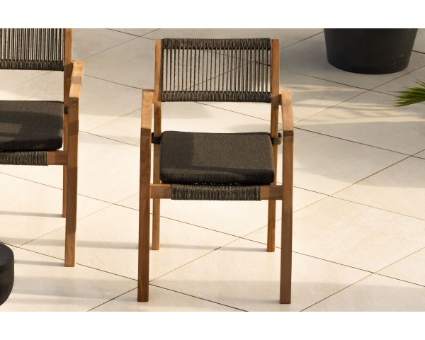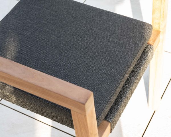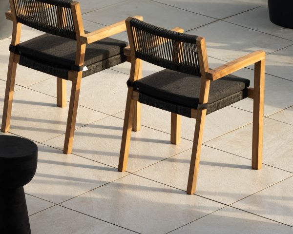 Il teak, noto per la sua robustezza, paragonabile a quella del rovere, è estremamente durevole, resistente e imputrescibile, grazie al suo contenuto di olio naturale. Inoltre, viene trattato appositamente in fase di progettazione per l'uso esterno. Tuttavia, con il passare delle stagioni e l'esposizione al sole e alle intemperie, il teak può assumere tonalità grigie.
