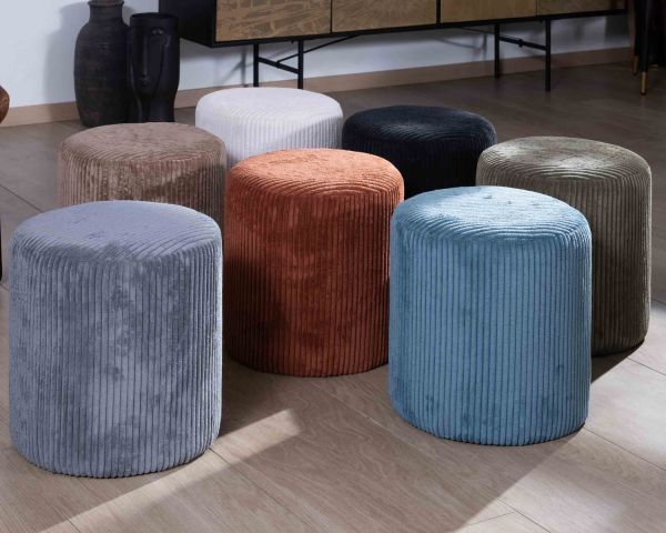 Il tessuto a coste creerà immediatamente una sensazione di comfort ovunque lo si collochi. Nel suo bel colore blu, questo pouf aggiunge una nota rilassante che conferirà un'energia tranquilla ai vostri interni.