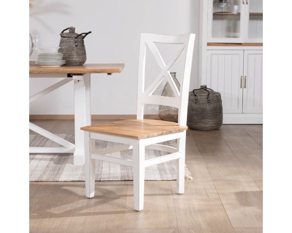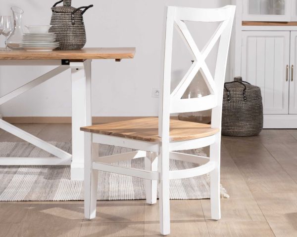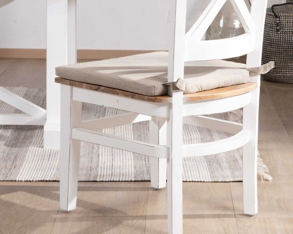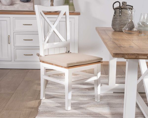 La sedia da pranzo in legno bicolore con cuscino della collezione "Trégastel" ha un design semplice e pulito che accoglierà i vostri ospiti in un'atmosfera di fascino senza tempo.